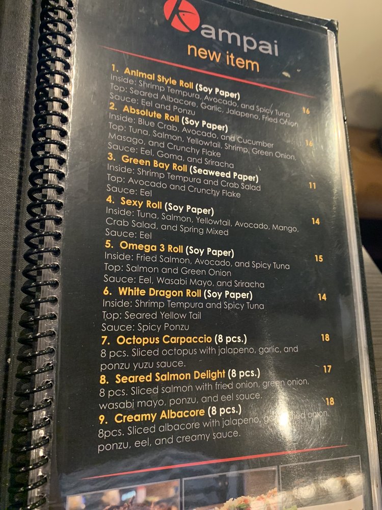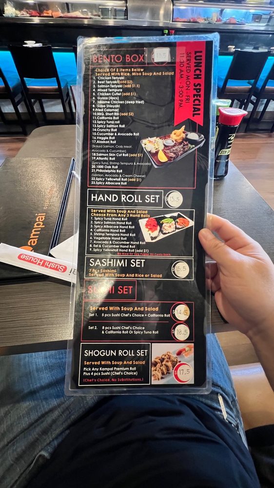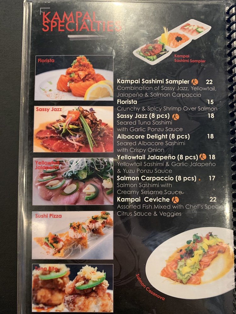 Kampai Sushi House in Los Alamitos, CA offers an array of appetizers like Edamame, Gyoza, and Fried Tofu, along with refreshing salads such as Salmon Skin Salad and Poke Salad. Their specialties include the Salmon Casanova and Sassy Jazz sashimi, showcasing fresh and flavorful combinations. Customers rave about the quick service, happy hour deals, and quality of the food, making it a favorite spot for sushi lovers. The ambiance is welcoming, with attentive and knowledgeable staff like Angie, who enhance the dining experience. With a diverse menu, excellent happy hour offerings, and high-quality fish, Kampai Sushi House is a hidden gem worth exploring.